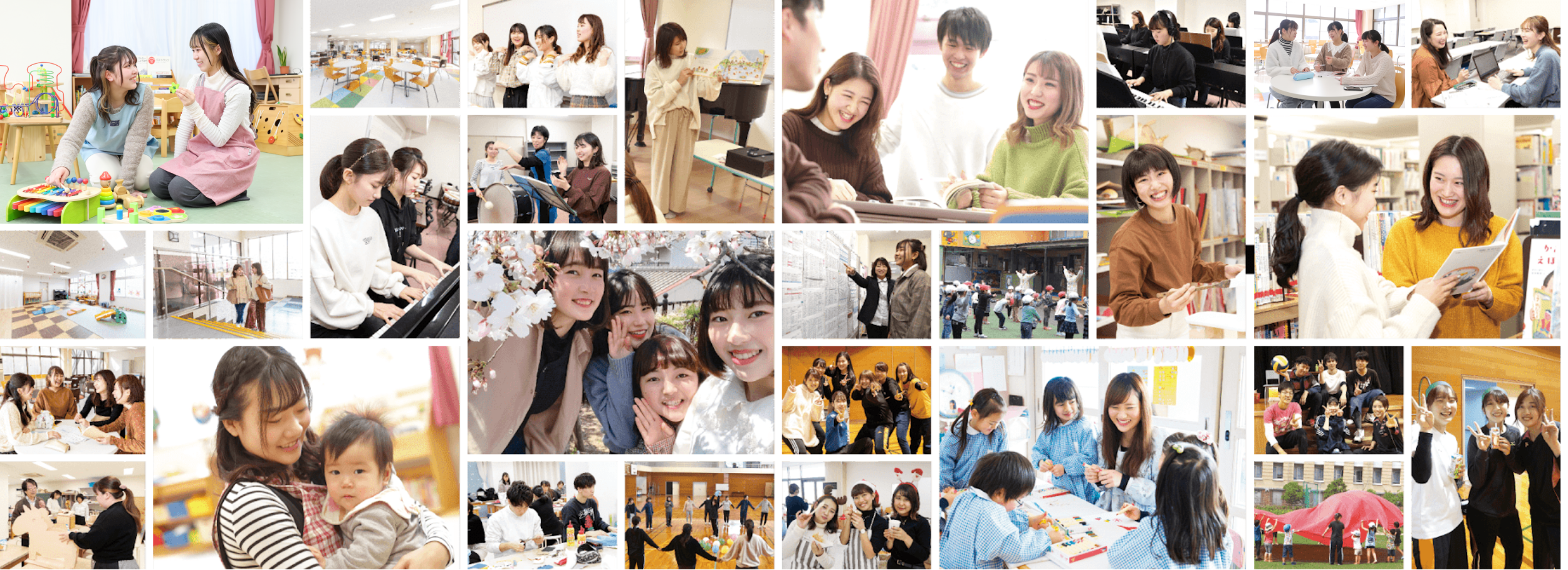 音楽・造形・体育の基本3技能を習得しながら、ICT保育・保育英語・子ども学ゼミなどの本学独自の科目を学びます。